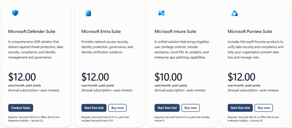 | **Microsoft Defender Suite** | Comprehensive XDR solution | $12.00 per user/month (Annual subscription) |
