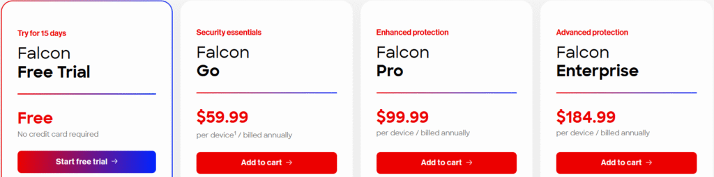 | **Falcon Pro** | Enhanced protection | $99.99 per device (billed annually) |