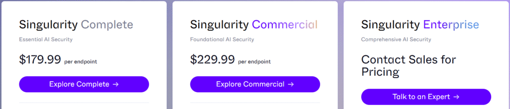 | **Singularity Commercial** | Foundational AI security | $229.99 per endpoint |