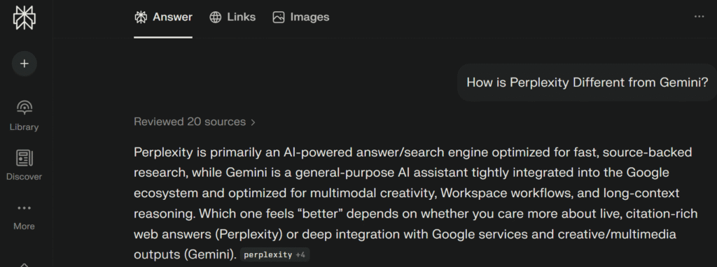 - Perplexity is great for quick, accurate answers with real-time citations.