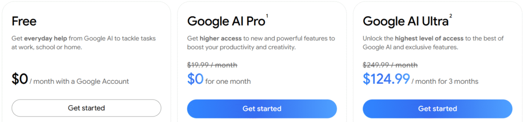 Gemini’s pricing comes from its placement within Google’s AI subscription ecosystem, and it varies depending on how you access it:
